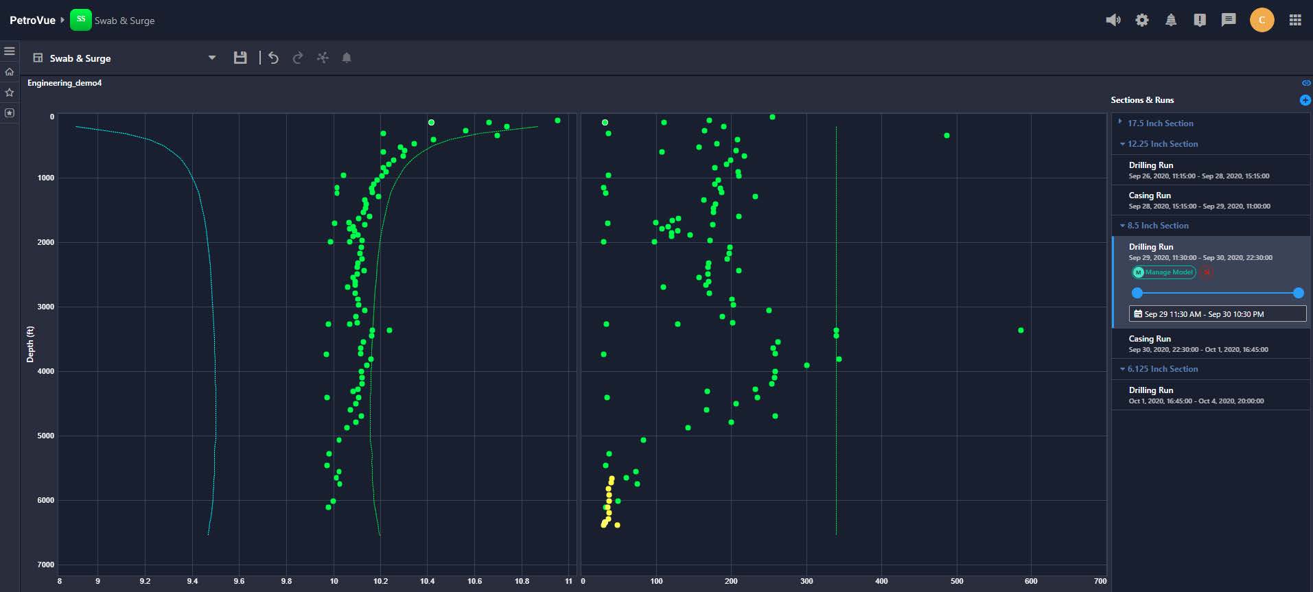 The Swab and Surge solution helps drilling teams proactively manage wellbore pressure during tripping operations. By calculating Equivalent Static Densities (ESD) in real-time, the system immediately compares operations against well fracture gradients and pore pressure limits. This confidently ensures wellbore stability by preventing costly issues like lost circulation and influxes, directly leading to reduced Non-Productive Time, safer operations, and enhanced drilling efficiency.