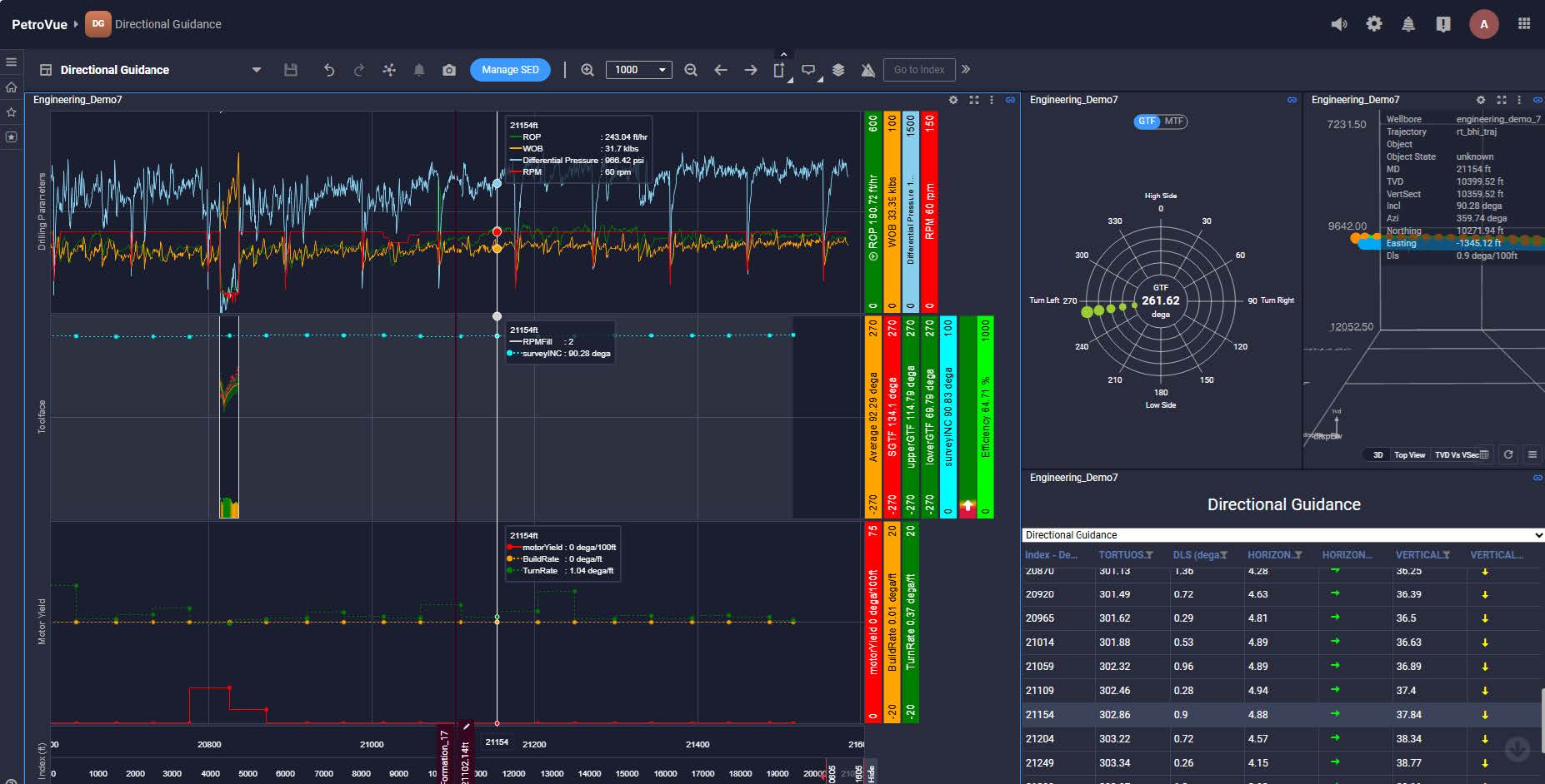 Use the Steering Rose widget and tooltips to manage wells and investigate data points.