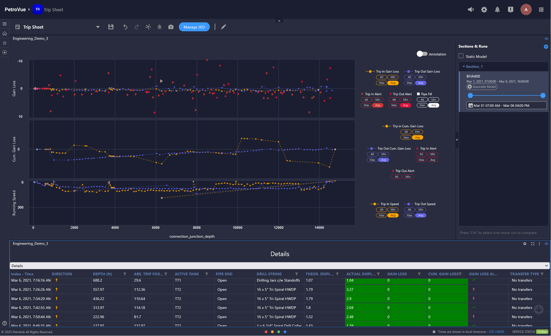 Easily compare data between drilling and tripping runs.