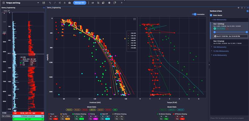 Visualize hookload and torque along with formation markers to identify trends.