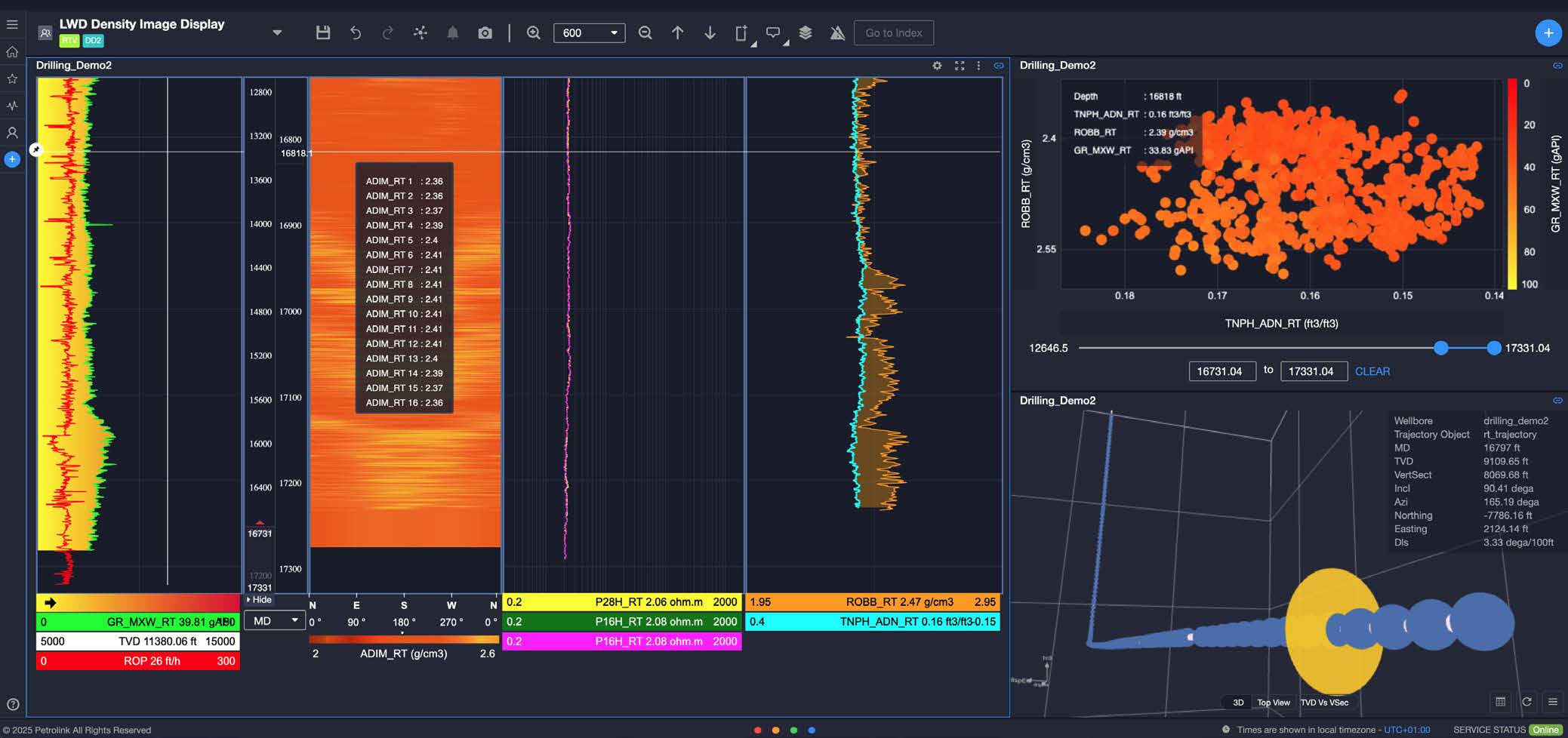 Correlate LWD data with trajectory changes using the geosteering dashboard.