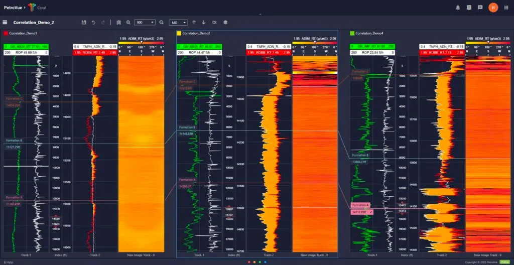 Coral is a real-time well correlation tool that gives you a comprehensive subsurface view. It efficiently correlates live drilling data with offset wells. You can also integrate LWD data, lithology, structural insights, and borehole imagery from both active and historical wells. With features like formation top picking, curve ghosting, and enhanced cross-well analysis, Coral enables faster, more informed geological decisions.