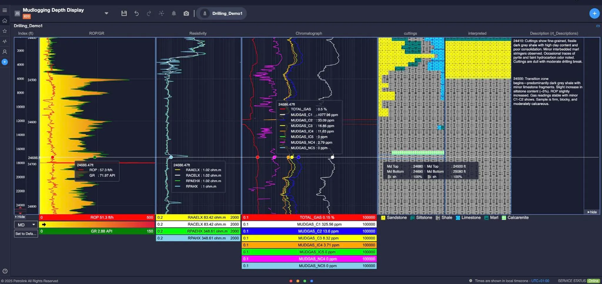 A customizable interface that integrates gas composition, lithology, and drilling parameters. Supports faster, safer decisions for formation evaluation and well control, while a clear, interactive log display enhances geological interpretation and collaboration.